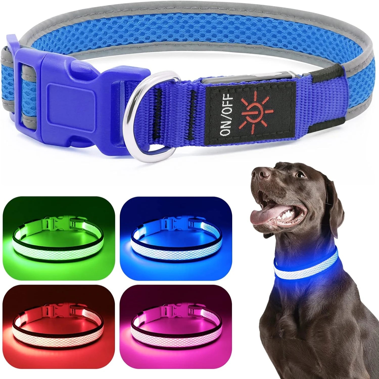 Comfortable Neon Green LED Dog Collar Lights USB Rechargeable Adjustable Soft Mesh for Small Medium Large Dogs