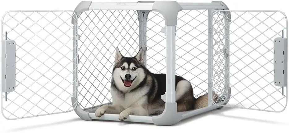 - CUSTOMIZABLE: Add or reposition up to 4 doors* to fit your space or give your pup freedom as needed. Easily convert Evolv into a playpen with the removable ceiling panel, offering a tailored experience for both pet and guardian.