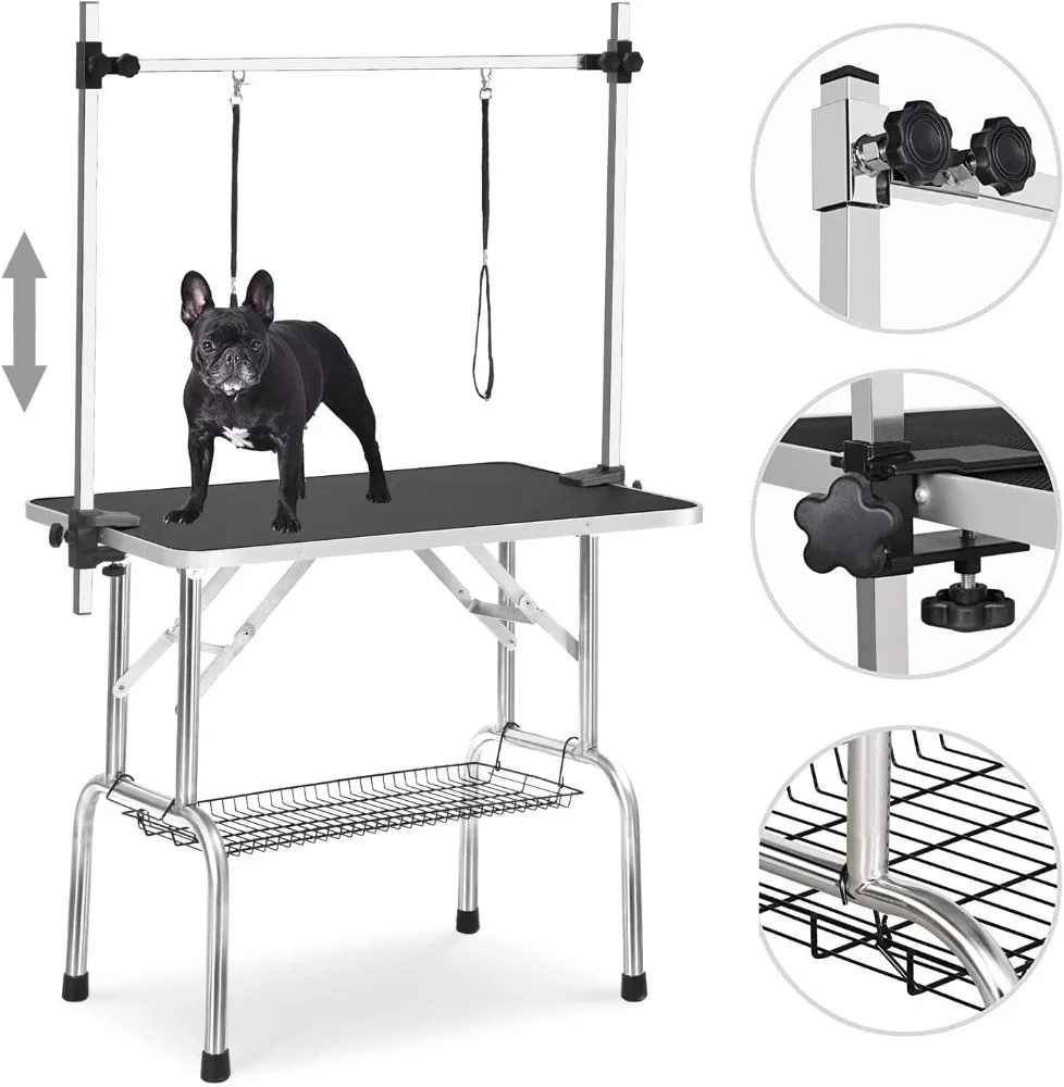 - 【Upgraded Aluminum Clamp & Rounded Table Edges】Two grooming arms height can be easily adjusted by the clamp to meet your need and it can be adjusted to 31 inch. H-frame with two nooses for varied needs.