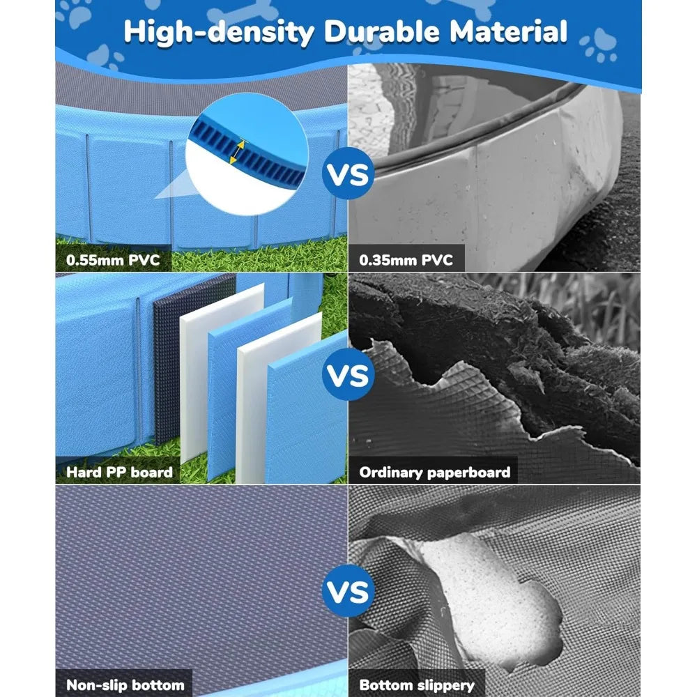 - Durable and Safe Materials: Constructed from robust PVC and PP hard plastic, this pool boasts a non-slip bottom for enhanced safety, allowing pets and kids to play with ease.
