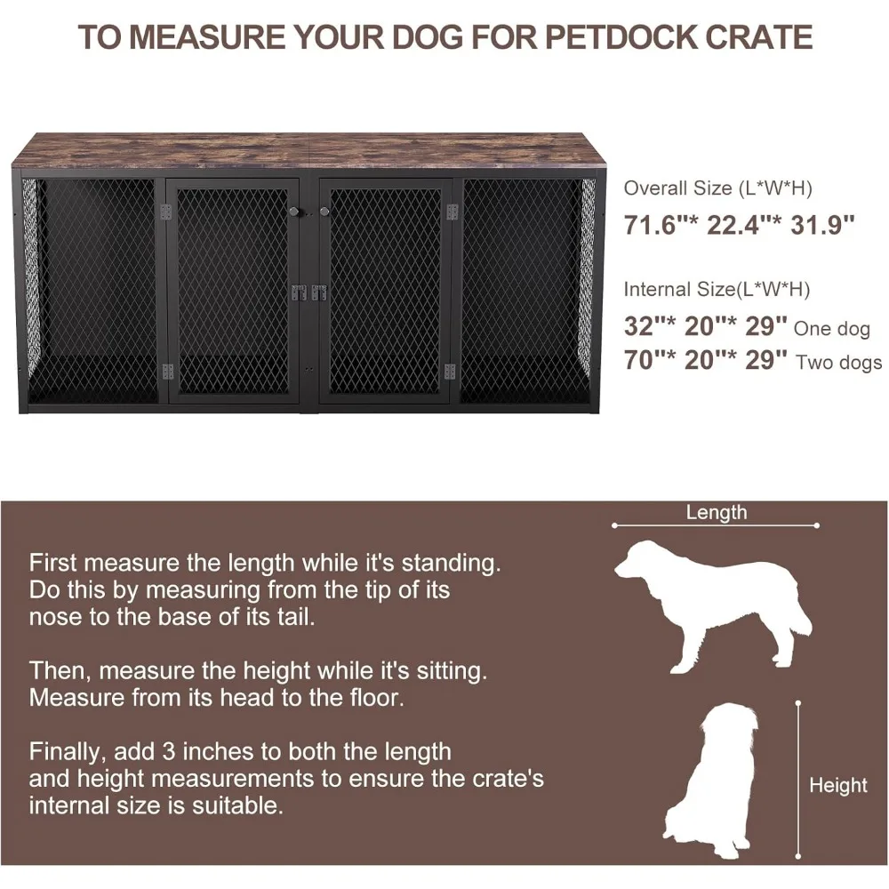 - Spacious Dimensions: Measuring at 71.6" x 22.4" x 31.9", this kennel is perfect for medium-sized dogs. Always measure your pet beforehand to ensure a comfortable fit.